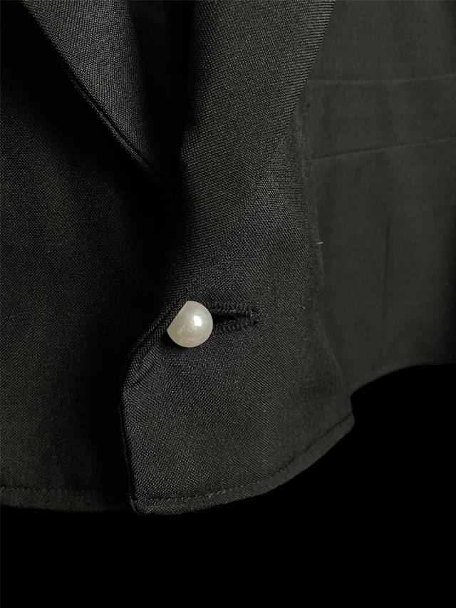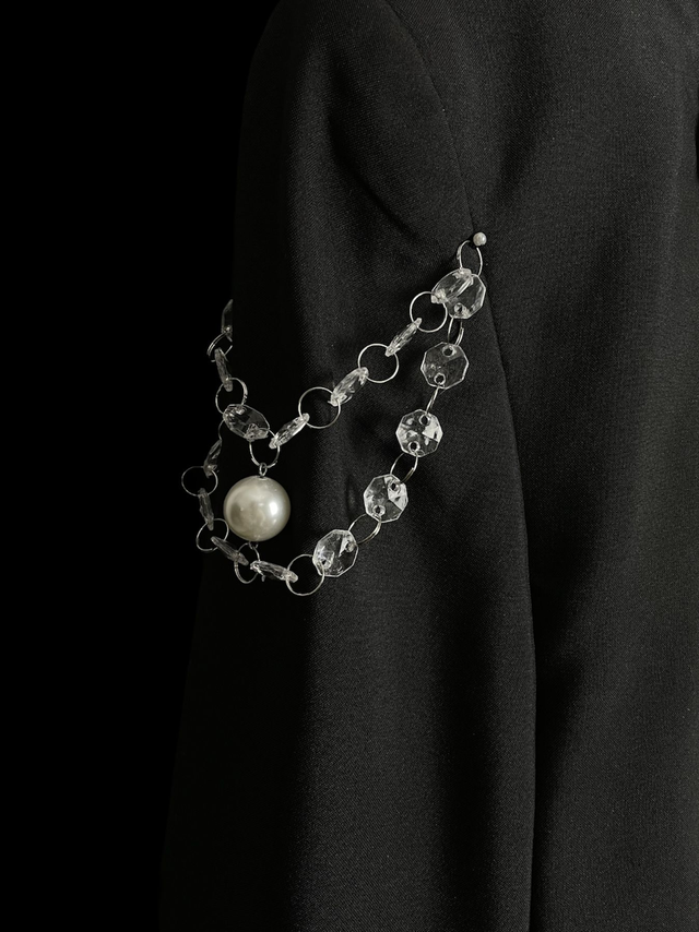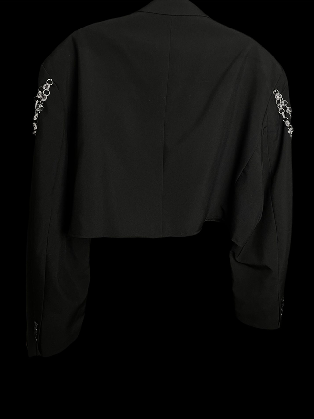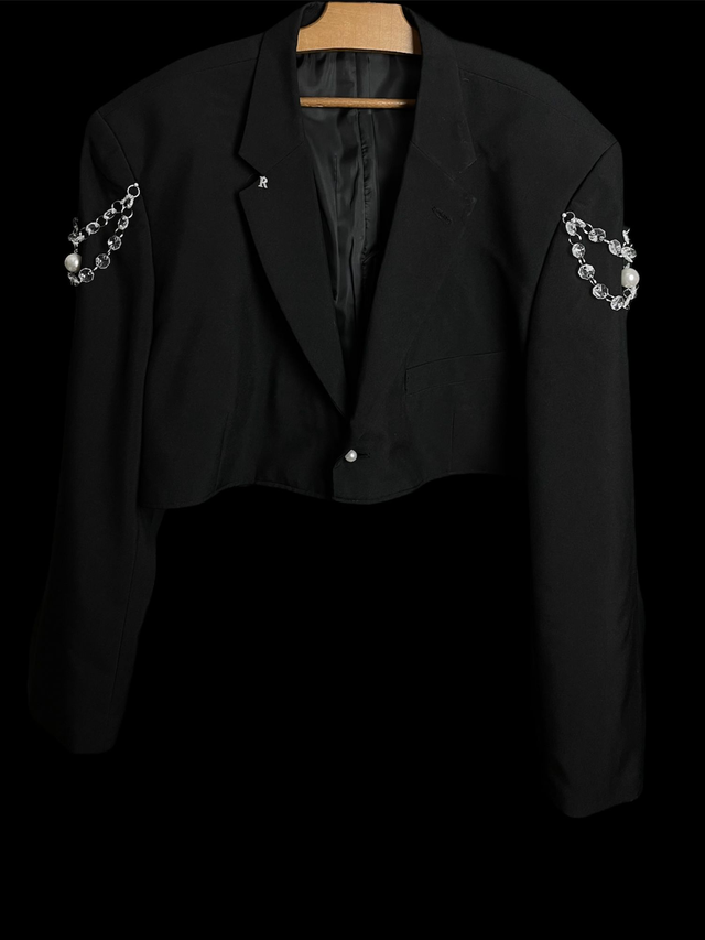 Blazer court de seconde main et upcycled avec détail perles et pampilles.