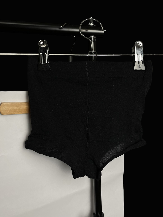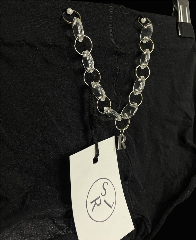 Culotte upcycled à partir de collants noirs et détails chaîne de pampilles. (Collants lavés et culottes relavées avant la mise en vente. Respect des règles d’hygiène.)